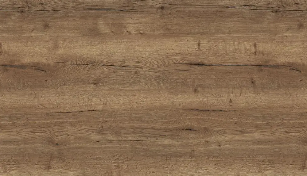 Матовая, древесная репродукция дуба с глубоким рельефом внешне и на ощупь напоминает натуральный, пропитанный маслом шпон.
