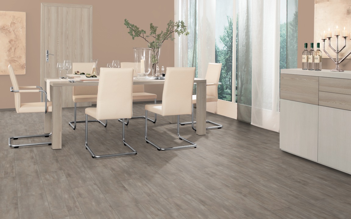 Имитация брашированной поверхности древесины мягких пород с изысканным перламутровым эффектом возникает за счет матовых и глянцевых элементов. В сочетании с этой структурой однотонные декоры смотрятся как окрашенная или лакированная поверхность массива древесины.