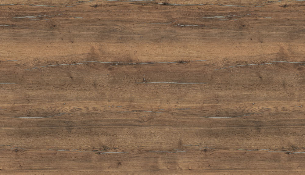 Эффект пескоструйной обработки древесины дуба становится еще более заметным за счет рельефа структуры, совпадающей с печатным рисунком декора Дуб Гладстоун.