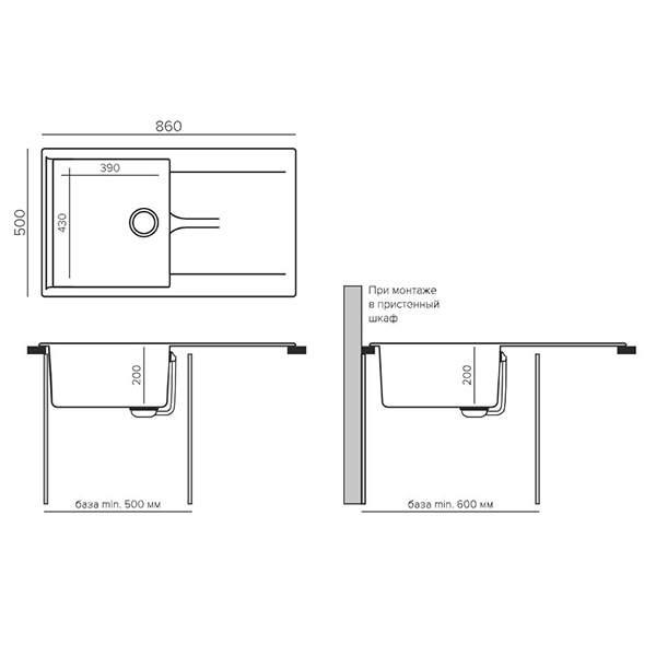 Мойка GALS 860 - идеальное соотношение чаши и крыла. Глубокая чаша вместительна и безопасна в использовании, дополнена увеличенным крылом с каналом для быстрого отведения стекающей воды. Устанавливается в кухонный блок шириной от 50 см.