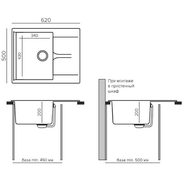 Мойка GALS 620 - оптимальный размер для маленькой кухни. Не смотря наличие крыла и глубокой чаши остается компактной. Крыло-сушилка со сливными желобками служит подставкой для посуды и продуктов. Устанавливается в кухонный блок шириной от 45 см.