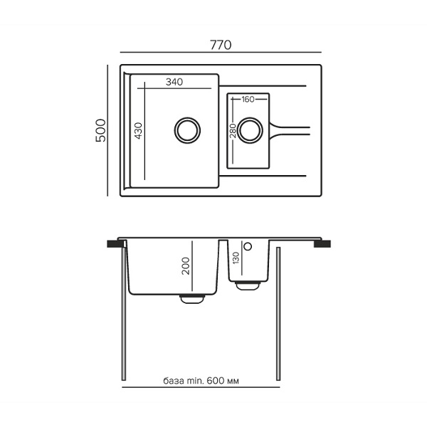 Мойка Polygran BRIG 770 - продуманность каждой детали. Вместительная основная чаша дополнена небольшой (параллельно друг другу), что позволяет рационально распределить рабочее пространство. Устанавливается в кухонный блок шириной от 80 см.
