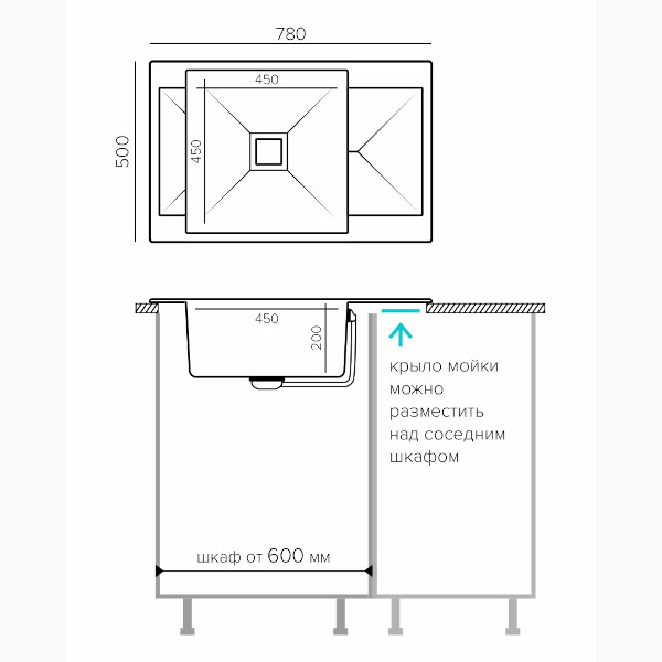 Ширина мойки, мм