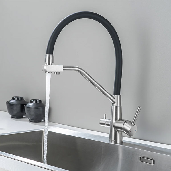 Смеситель кухонный Avivacom с фильтрацией, сатин/черный