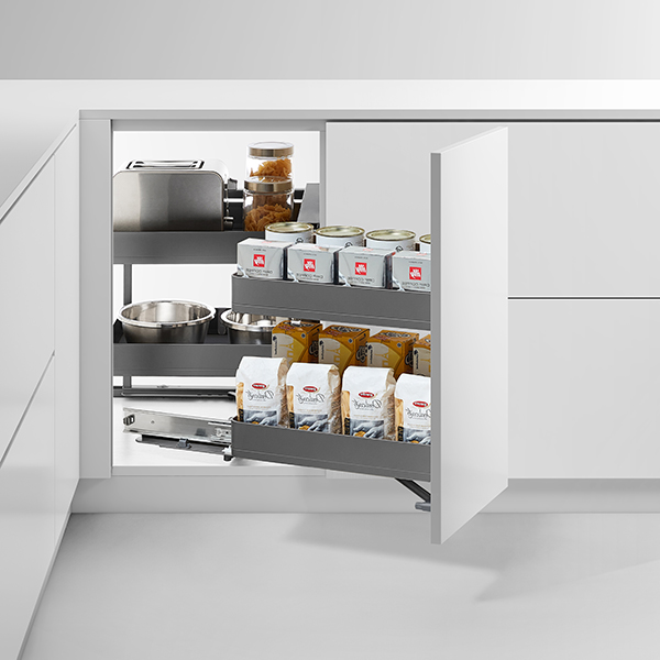 При открывании автоматическое отведение передних корзин в сторону. Легкий доступ к содержимому нижнего шкафа. Встроенный доводчик гарантирует бесшумное и плавное закрывание корзин. В комплект входят 4 корзины.