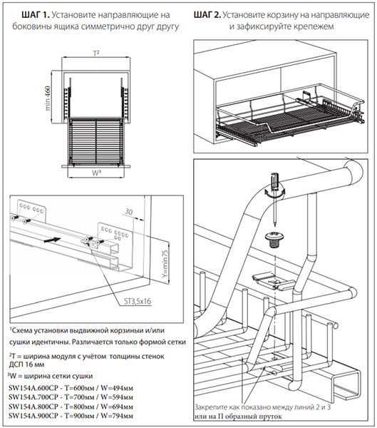 - Корзина-сушка Aurora может быть установлена с выдвижным и распашным фасадом. Нерегулируемое крепление фасада предоставляется в комплекте.