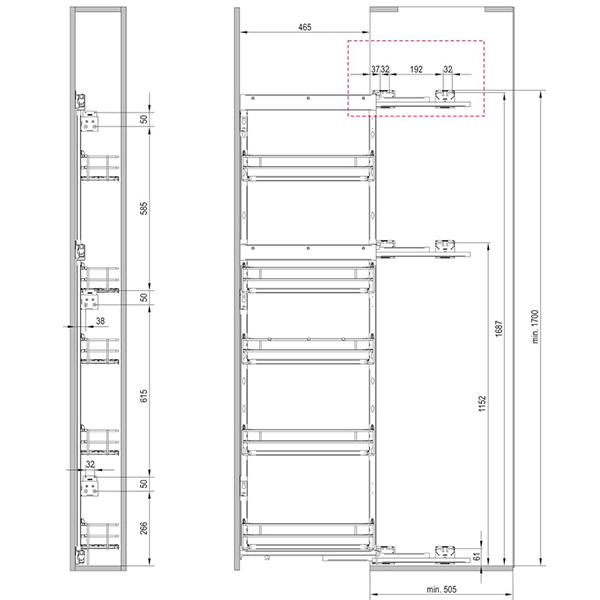 Колонна выдвижная Maxima Classic Cargo Maxi в базу 200 мм, левая