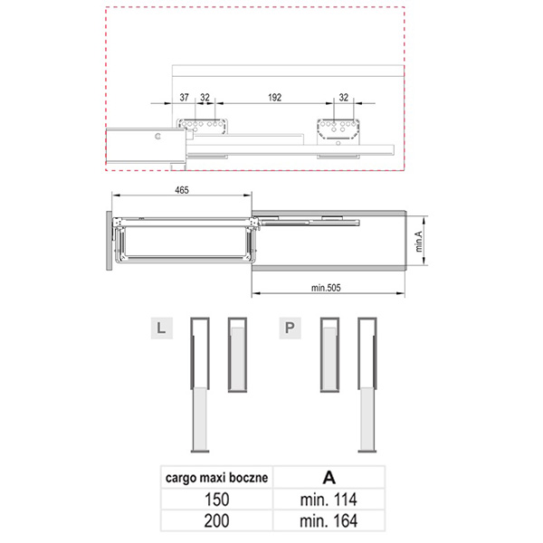 Колонна выдвижная Maxima Classic Cargo Maxi в базу 200 мм, правая