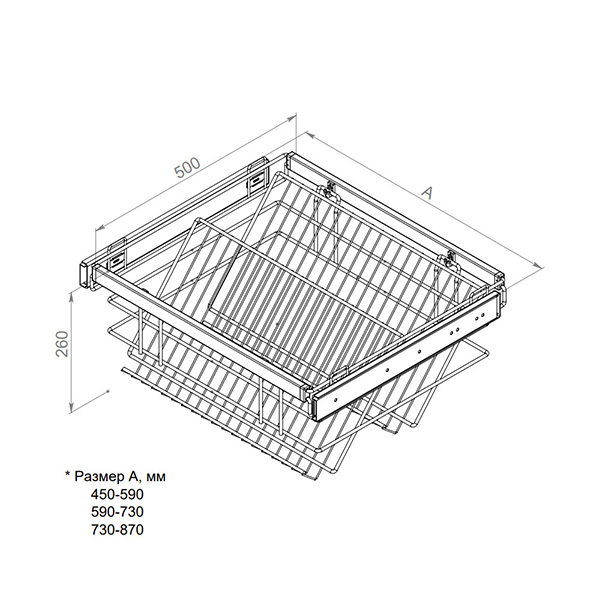 Полка для обуви UMM 590-730*500*260мм с напр., без доводчика, серый