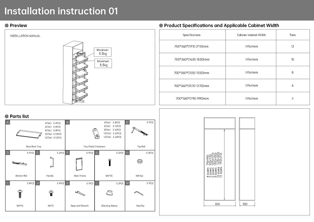 Полка для обуви (6 полок) поворотная на 360 градусов 700*360*1070-1270, серая