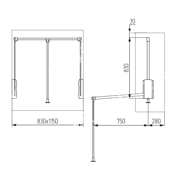 Пантограф для шкафа (лифт мебельный) 830-1150 мм, алюминий