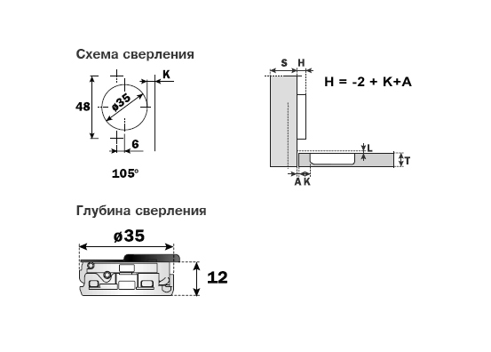 Глубина сверления под чашку: 12 мм