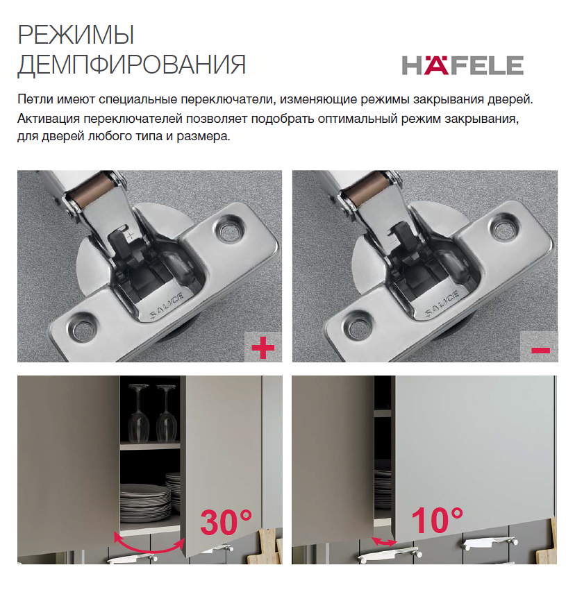 Амортизатор встроен в чашку петли.