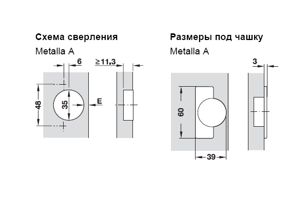 Петля мебельная Hafele Metalla А вкладная 110°, 48мм