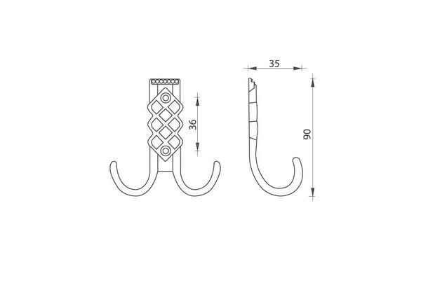 Крючок 2х рожковый, античная бронза