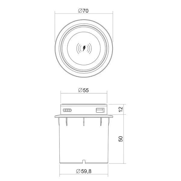 Розетка 3 розетки+2USB, провод 1,8м, пластик серый, d=60мм