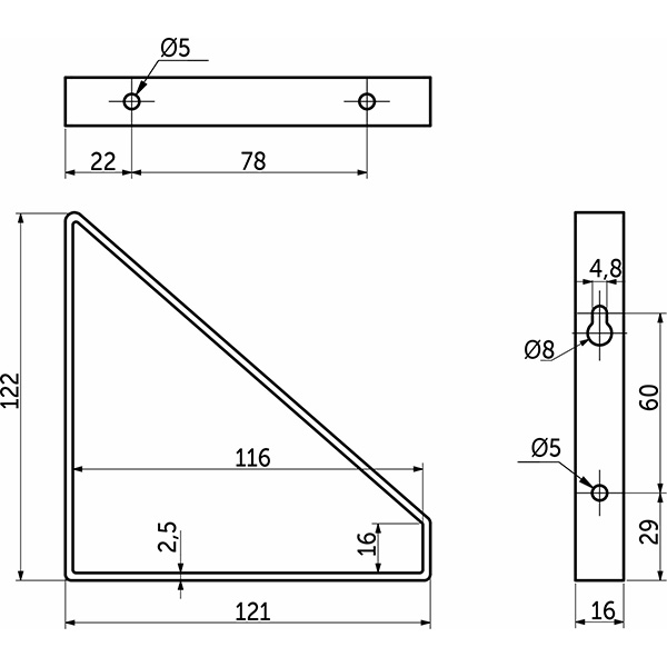 Полкодержатель 122x121x16мм, черный матовый