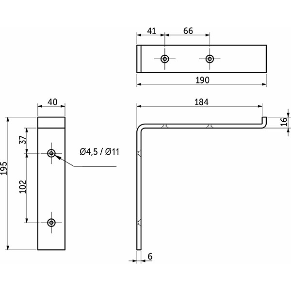 Полкодержатель 190х190х40мм, черный матовый