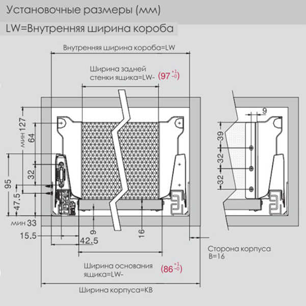 крепление задней стенки ящика H 160 мм, 2 шт.
