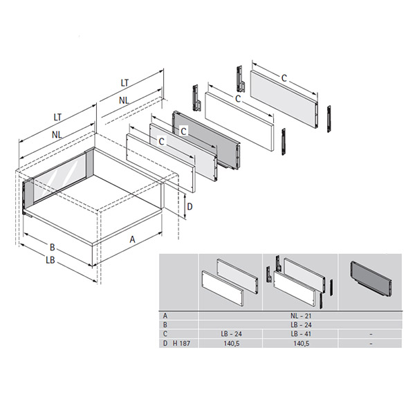 В комплект ящика Hettich Avantech You Inlay NL-350х187мм, Silent System входит: