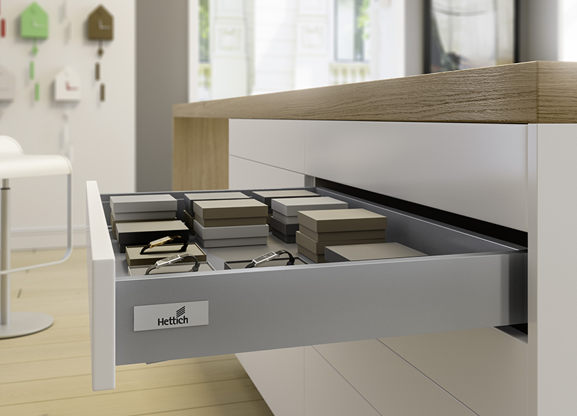 Оцените инновационную систему выдвижных ящиков Hettich! Система с двойными металлическими боковинами. Отточенные контуры и варианты цветовых решений создают огромный потенциал для реализации идей. Регулируемые элементы позволяют подстроить ящики с учетом Ваших пожеланий. Возможно выравнивание фасада по вертикали, горизонтали и наклону.